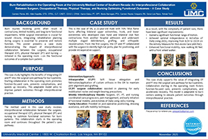 Burn Rehabilitation in the Operating Room at UMC: An Interprofessional Collaboration Between Surgeon, Occupational Therapy, Physical Therapy, and Nursing Optimizing Functional Outcomes – A Case Study #4Question for the Poster Authors |